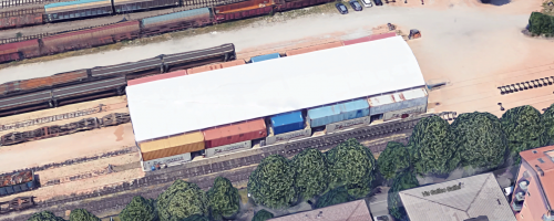 Train maintenance depot in Verona Italy. 20 containers, mixed 20' & 40'
