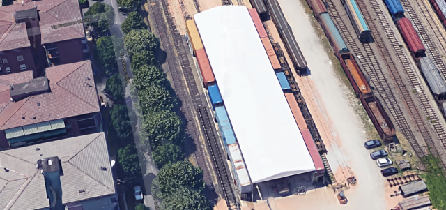 Train maintenance depot in Verona Italy. 20 containers, mixed 20' & 40' SitePictures Type Commercial URLs Google Maps GeoLocation Geolocation is 45.433981, 11.015009
